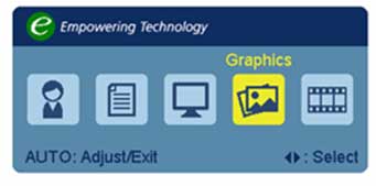- Graphics mode--Delivers optimum quality when displaying colourful static images such as photographs and pictures