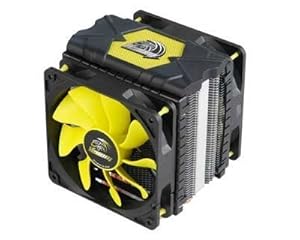 Venom Voodoo, this cooler is definitely rock and roll. Venom Voodoo delivers ultra high performance enabling serious system overclocking. The 12cm killer Viper yellow fan uses S-Flow blades providing 30% more airflow than a standard fan at the same speed. PWM function ensures quiet operation during normal system use and performance cooling under load.The Black cover and copper heatpipes combined with the Viper yellow elements creates a striking combination which adds pazazz to any system. Six high capacity heatpipes with direct CPU contact provide rapid heat transfer from CPU to high grade aluminium profiled fins. Anti-vibration rubber fan mounting pins provide easy installation and help to eliminate a lot of fan noise. Adjustable mountings ensure full compatibility with all current AMD and Intel CPU’s.Dual 12cm viper fans giving extreme performance in a push-pull setup where the first fan “pushes” air through the heatsink’s cooling fins, at the same time the second one “pulls” air through from the other side. The combined airflow of two 12cm fans results in more efficient heat dissipation and consequently lower CPU temperatures.