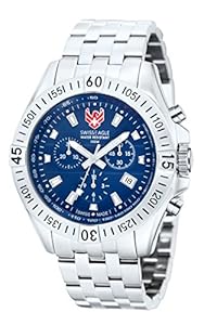 Like the creature it takes its name from the Swiss Eagle range of timepieces comprises a range of high quality performance Swiss Made sports watches which demonstrate the same power, precision and dynamism from its namesake. Created in 1961 in Biel, Switzerland by noted watch professional, Hans Knoll the brand has dedicated itself to the production and development of finely tuned sports timekeeping instruments. The collection hosts three major themes covering the essential arenas where the most professional of experts need precise, robust and stylish timekeeping. Hans Knoll was a Swiss watchmaking pioneer who wanted to bring functionality and robust construction to Swiss Watch making. The name derives from the Swiss Eagle which is native to the majestic peaks of the Alps and is a truly magnificent creature, tremendously agile, streamlined with a strength and power unmatched. This is what we have attempted to design to reflect in our brand of Swiss made watches. While many Swiss watchmakers wanted to make beautiful dressy watches, Hans envisioned a line of solidly dependable watches that nonetheless were well designed and proportioned. Hans understood the rigours of outdoor life and wanted to create a line true to the functions needed for usage of timepieces in the SEA (DIVE), in the AIR (FLY) and on the ground (FIELD). Swiss Eagle represents the culmination of those efforts in combining Swiss made precision with robust timekeeping. Each watch is segmented to be suitable and able to perform to the conditions asked of it and still comes in at a price point that is sensible. By stripping out the fancy ad campaigns, and sponsorships synonymous with other brands we can bring to market the best of Swiss Watch making excellence at affordable pricing for enthusiast and professional alike. Building a watch is no easy feat. Building a Swiss Made watch employs the very highest levels of watchmaking. What makes the challenge even more unique with Swiss watches designed for performance is adding in and injecting the right design and production requirements needed to create a timepiece that is functional as an instrument more so than just a time-telling piece of jewellery. Our watch cases are stamped out from moulds and then individually carved by hand to the exacting designs of the watch. They are drilled and carved out to make room for pushers, crowns and the case back. Careful attention is taken to drill holes, attach components and to carve out lines and angles in a manner that allows the case, which is the heart of the final watch to hold together the mechanics and the ergonomics of the watch together. Watches from SWISS EAGLE are precisely produced not only to house and case the watch but are produced to a higher standard of relative water resistance and shock proofing against the elements. While the internal machinery of the watch is a finely tuned assembly of gears and components designed to produce pin point timing accuracy the challenge of the designers and engineers involved with our production is to produce a case that is robust enough to house these delicate machineries to withstand the forces of nature that surround the functioning of this timepiece. The lens is a utilization of scratch resistant sapphire lens found on the top end of watches and rarely used because of its expensive nature. More expensive to use on sports watches with higher water resistance as the lenses need to be even thicker than on simple flat dress watch lenses. The stainless steel cases and bracelets are made from 316L marine grade with a safety clasp dual pusher lock mechanism for extra security. On the DIVE models we have added extender attachments for professional use to help extend the bracelet over wet suits. The dials have hand applied indexes and are hand finished, we also use of high quality luminous materials to assist in lower visibility environments. The SE-9020-22 carries a Swiss made chronograph movement with date and is from the Fly family of watches. It features a contrasting blue dial with luminous hands and indices.