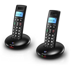 The BT Graphite 2100 features a smart black design with a blue backlit display. The matching base station compliments the design of the handsets.