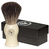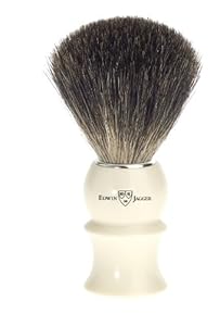 This ivory-coloured, pure badger hair-filled shaving brush with moulded plastic handle and Edwin Jagger logo is an entry level shaving brush and excellent value for money. For a new or experienced shaver wishing to try a shaving brush for the first time this will be the answer. Pure badger hair has the ability to absorb hot water during the shave so it will ensure an effective lathering performance for your daily shave with either Edwin Jagger natural, paraben-free shaving cream or shaving soap. This Edwin Jagger shaving brush comes packaged in an acetate box with wet shaving and care instructions to ensure longevity.