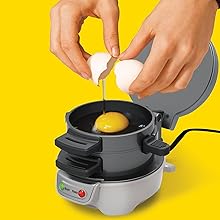 Step 2Lower the top ring and the cooking plate for your egg. Crack your egg onto the plate and pierce the yolk. |