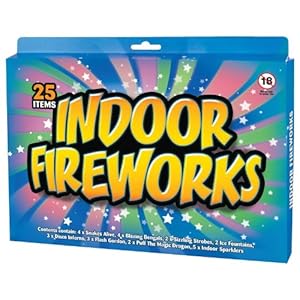 I thought these things had improved since my childhood! Er, no. Tiny pellets the size of watch batteries are lit to produce tiny pops of green light, or oozing black 'worms'. With the exception of the 2 fountains & 4 mini sparklers, this pack bears no resemblance to what most people would think of as fireworks. And dear Lord - THE SMOKE!