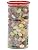 INGREDIENTS:Sugar, glucose syrup, modified cornstarch, flavourings, strawberry puree, acidity regulators (E270, E296, E297, E325, E330, E331), peach puree concentrate, raspberry puree, apple juice concentrate, strawberry juice concentrate, banana puree, colours (E100, E102 [tartrazine], E110, E129, E132, E133, E150d, E171), lemon puree, plum juice concentrate, glazing agents (E901, E903, E904), blueberry puree, coconut, pear juice concentrate, orange puree, kiwi juice concentrate, chocolate (sugar, chocolate liquor, cocoa butter, emulsifier: E322 soy lecithin, flavouring), passion fruit juice concentrate, tangerine juice concentrate, watermelon juice concentrate, grapefruit juice concentrate, pineapple juice concentrate, cherry juice concentrate, cocoa powder, ascorbic acid, cantaloupe juice concentrate, freeze-dried soluble coffee, lime juice concentrate, pomegranate juice concentrate, salt, vanilla beans, tapioca dextrin. Contents are randomly assorted and may not contain every flavour. E102, E110, E129: May have an adverse effect on activity and attention in children.