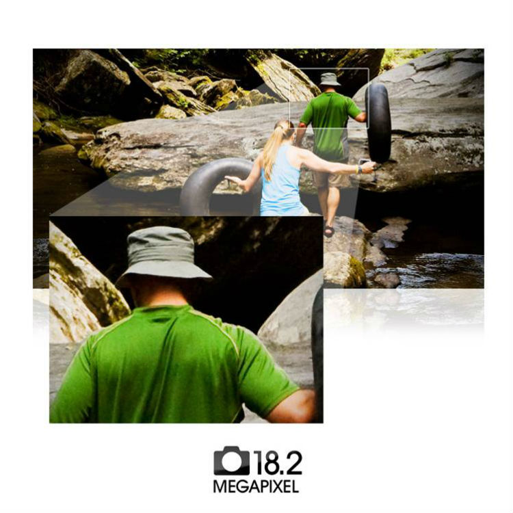 There’s nothing complicated about megapixels. The more you have in your camera, the sharper and finer your pictures, especially when enlarged or played back on your big screen TV. No more fuzzy faces, diluted detail or blurred backgrounds. No more hammering away at the delete button. If you want to blow up a great shot of yourself and get it framed, it’s a sure bet you’ll see much more detail with a high megapixel camera. This one has plenty of pixels – over 18 million to be precise - more than enough to make impressive large prints or crop a picture to focus on something specific without losing definition.