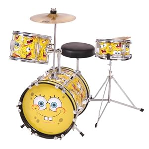 Spongebob Squarepants SBK100 drum Kit.. OK – no reason why only guitarists should have all the SpongeBob fun, is there...? So let's get the young drummers of tomorrow involved too, because absolutely no-one's going to be able to resist the brill new 'SpongeBob SquarePants' SBK100 drum kit from PP Drums (Performance Percussion)! . If your young ones are interested in playing drums (or even if they're not, they will be!), they'll adore the neat 3-piece drum kit with oh-so-funky full colour SpongeBob SquarePants drum shell graphics! . The Spongebob drumkit is a 3 piece drum kit with a bass drum, tom-tom and snare drum, plus a crash cymbal. . Specifications of the Sponge Bob Square Pants drum kit. . 12" bass drum, 8" tom. 8" snare, 10" cymbal. Includes bass drum pedal . Complete with drum stool and sticks. . Suitable for children between 3 and 6 dependent on the size of the child. The stool measures approx 12" from floor to the top of the seat, so the child would need to be able to put their feet on the floor comfortably when on the seat. Check out the Youtube video below: . . . . . . . ....