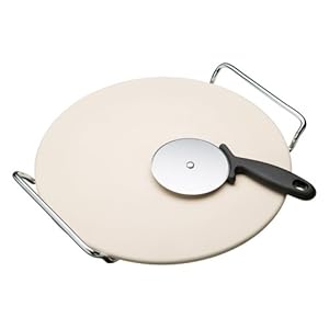 World Of Flavours Italian pizza stone set heats evenly and absorbs moisture to produce a crispy based pizza every time. This pizza stone set includes a pizza baking stone, a heavy duty chrome serving rack and a pizza wheel cutter with a stainless steel blade. The pizza stone is 32cm / 12.5" and the cutting wheel is 10cm / 4" and is oven safe up to 220°C / 428°F. Part of the World of Flavours Italian range, create your very own Italian kitchen.