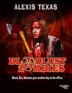 As far as dumb horror- comedy zombie movies starring an adult porn star go, Bloodlust Zombies is actually a pretty good little film. Alexis Texas will never get the role of Hester Prynne in a modern remake of The Scarlet Letter, but she can more than hold her own against her fellow cast members in a B--movie romp like Bloodlust Zombies. She's really not that bad of an actress, truth be told, and she's certainly easy on the eyes, even when covered in blood. I do feel compelled to point out, however, that there really aren't any zombies in this movie. People start acting like zombies after being exposed to a new bloodlust-inspiring biological weapon and they need to be shot in the head like zombies - but they are not zombies, technically-speaking. Now some people are going to pre-deduct points from this film just because it stars an adult film star, and they're probably going to tut and shake their heads when Alexis is called upon to take off her clothes and act all sexy - but I'm not one of those people. Even if I were, there are a number of other enjoyable aspects to this film. You've got some office satire, a lot of pretty satisfying gore (particularly in the arterial spray department), and all kinds of juvenile humor that will make you laugh (whether you want to admit it or not).