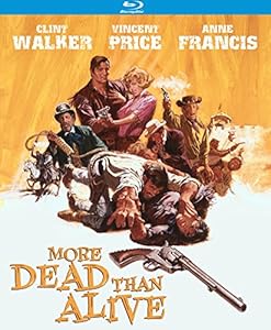 If you're prepared to forget one of the worst music scores in movie history and the fact that this looks and plays like a TV episode, then you're in for a reasonably enjoyable time. In fact, because it plays like a tv episode, it moves along at a fair old clip. The story is a cliche - gunfighter is released from prison but can't escape his murderous past. He joins a travelling Wild West Show (owned by a wonderfully hammy Vincent Price) as a sharp-shooter, much to the ire of the current gun-sharp (who's even hammier than Price). There's a lot of talk, and the big action sequence comes at the beginning of the film which tends to throw everything out of kilter. The other factor working against this is a lack of strong villains. The jealous gun-sharp is quickly established as a cowardly blow-hard, and the only other villain of note (played by ex-grid-iron star Mike Henry) disappears after twenty minutes and stays out of the action until right at the end. Even with all this working against it, More Dead Than Alive is an enjoyable, undemanding romp. Vincent Price bites the dust in what is possibly his bloodiest on-screen death (with maybe the exception of Witchfinder General) and there's a down and dirty fight between Walker and Henry at the end (even if they do tend to throw too many things at each other). I took the risk in buying this dvd and was pleasantly surprised.