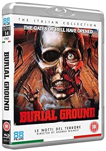 In BURIAL GROUND, the carcass-crunching action comes thick and fast as veteran director Andrea Bianchi (STRIP NUDE FOR YOUR KILLER) evokes the sinister flesh-feasting spirit of Lucio Fulci and George Romero. Also known as THE ZOMBIE DEAD and NIGHTS OF TERROR, Bianchi s bout of bloodstained brilliance has a pack of ghoulish predators entrap some ridiculously ill-prepared locals in a moody, malevolent mansion. Suffice to say, a mammoth amount of stomach-turning, meat-munching mayhem ensues. Adding to the onscreen unease, BURIAL GROUND stacks its story with a series of sicko special effects courtesy of the legendary gross-out expert Gino De Rossi (CITY OF THE LIVING DEAD/ THE HOUSE BY THE CEMETERY/ CANNIBAL FEROX). Only the golden age of Italian horror could have delivered a movie-meal of such outstanding insanity as BURIAL GROUND brought to UK BluRay, uncut and uncensored, by the splatter-sympathisers at 88 Films!