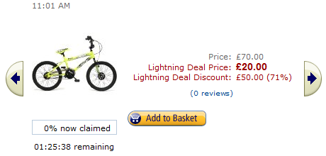 The "Add to Basket" button on a Lightning Deal shows that the