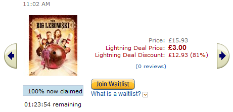 - The current Amazon.co.uk price, the Lightning Deal