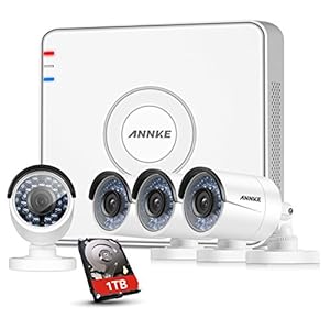 • ANNKE 4 Channel HD 1080P SPOE Security Camera System - 1TB Hard Drive, 4x 960P Bullet Camera, IP67 Weatherproof , Power over Ethernet, Easy Remote Access