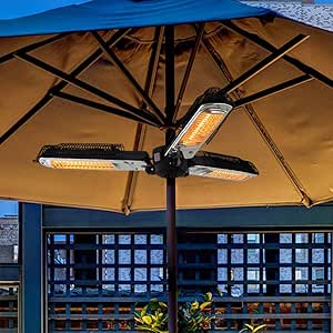 ATR ARTTOREAL Electric Patio Parasol Umbrella Heater, Folding Outdoor Electric Infrared Space Heater with 3 Heating Panels for Pergola or Gazabo