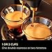 Some users find the frother not to their likiing, but it's perfect for me. Filling it half to the "max" line does a single cup of milk with practically no liquid left, and to the line leaves some hot milk and enough froth for 2 cups. Given it's only producing coffee for one or two cups at a time, that seems fair. The milk comes out beautifully, just as required for cappucino, for example. For a latte, it's not going to give you the same amount of hot milk liquid plus foam needed - but the machine isn't really aimed at that drink.
