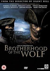 If you crave an over-the-top historical kung fu-fantasy epic with a good dose of voluptuous nudity, bravura machismo, and passions so intense they verge on ridiculous, then Brotherhood of the Wolf is for you. Based (loosely) on an 18th-century legend, this French film follows a hunky scientist (Samuel Le Bihan) and his Iroquois sidekick/spiritual partner (Mark Dacascos) as they pursue a monstrous wolf ravaging the French countryside. Along the way Le Bihan gets entwined with a beautiful noblewoman (Emilie Dequenne) and a gorgeous prostitute (Monica Belluci) with secrets to tell. The plot grows more and more incomprehensible, but the mix of torrid emotions, outrageous action sequences, and lurid titillation is really what the movie is about. Ignore the highbrow philosophising and confused political intrigue; just enjoy the sensual images.--Bret Fetzer