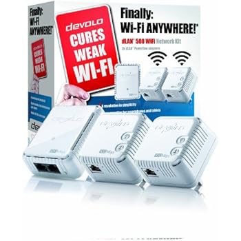 devolo dLAN 500 Wi-Fi Powerline Network Kit (500 Mbps, 3 x PLC Homeplug Adapter, 1 x LAN Port, WiFi Signal Booster, Wireless Extenders, Wi-Fi Move, whole home wifi, Power Save) - White