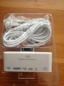 Item Sold exclusively by Digi Style. This compact and simple to use device is a must to get the full use from your iPad or iPhone, its diverse range of features saves from having to swap between add ons. Simple plug this into the bottom of your device for the following features. To start this has a HDMI output that can be plugged directly into your TV or HD Monitor to view whatever is on your screen in a larger format (no HDMI cable included) There is also an included 1.4m AV cable for the same functionality but with a wider range of compatibility. Another function is to place a memory card into the bottom of the adapter and the built in software automatically loads up a import view on your iPad where you can select individual or all photos and Videos to be transferred to your device and stored, perfect when on holiday when your card gets full and saves having to carry a laptop about. The same can be done with the included Micro USB cable by plugging into a camera and downloading direct from it. The same cable can be used to charge your device whilst using the HDMI or AV out to ensure you can get through the whole film. Another use of the cable is to connect it to a USB keyboard to allow for faster more accurate input. The final feature is the included sync cable that can sync your device with your laptop/P.C/Mac. Compatibility iPad 2/3 and iPhone 4 S all of the above. iPad 1, iPhone 4 and iTouch 4g will support the above and play videos/pictures down the HDMI but not other screens eg home screen or settings, this is the same when using the AV cable. All other apple devices will not support the HDMI output but can still use the AV output. Please note a low definition video played through the HDMI will not improve picture quality but will maintain existing HD formats to their high quality. The MAX definition iPad 2/3 supports is 1080P, while iPad 1, iPhone 4/4S and iPod Touch 4 supported is 720P. Boxed retail packaging included.