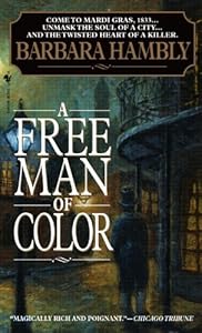 Nevertheless: Benjamin January (Janvier in the French) is a free man of color in Creole (that is, French and Spanish) New Orleans, just as carpet-bagging Americans are beginning to pour in and change everything, disregarding the powerful "Customs of the country," and the "black laws." New Orleans society is quite complicated at the time: next to the white Creoles stand their free cousins, half-brothers and sisters of color, locally graded by the fairness of their skins, and their percentages of black or white racial heritage: Hambly gives us all the local jargon covering these gradations, octaroon, quadroon and so forth, but, once again, I found it, though fascinating, a bit confusing, hard to remember, could have done with a table up front. At any rate, these cousins are also graded on their relationships to the city's most powerful families, and, "mais oui," their beauty. The most beautiful young women are "placees," kept women with their own houses, servants, slaves, carriages, jewels.