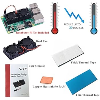 GeeekPi Dual Fan CPU Cooling Fan Kit Heat Dissipation Radiator Cooler Fan Set with 2 Pack Thermal Tape for Raspberry Pi 3/2 Model B/B+, and Fits Retroflag Nespi NES Case