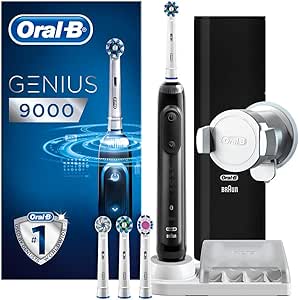 The best Oral-B electric toothbrush, Oral-B Genius 9000 black is an intelligent brushing system that helps you brush like your dentist recommends. With distinct position detection technology, you will never miss a zone. Oral-B's distinct round head removes up to 100 Percent more plaque than a standard manual toothbrush for healthier gums - all while giving you a whiter smile starting from first day of brushing by removing surface stains. Not only this, but the toothbrush helps you protect your delicate gums with the proprietary SmartRing and pressure control technology that reduces brushing speed and alerts you to be gentler if you brush too hard. Last but not least Genius 9000 in black comes with a Lithium-Ion battery that lasts more than 2 weeks with 1 charge. With Oral-B Genius 9000 black you can't go wrong in brushing. No wonder Oral-B is the N1 recommended brand by dentists worldwide.