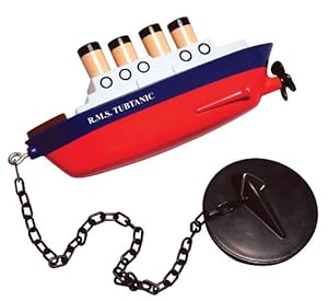 TUBTANIC BATH PLUG SINKING SHIP TITANIC BATH PLUG SECRET SANTA GIFT This is a hilarious bathroom accessory that will enable you to re-enact scenes from the hit movie Titanic in your very own bath tub. Maybe it's not in good taste to make fun of the greatest ever ice breaking ship to be built that sank on its maiden voyage after hitting an ice cube.... but we love making light of everything! This bathplug will fit any standard size drain. The chain from the plug then attaches at the other end to a ship in the shape of the titanic so that it will float on the surface of the water. When floating it will even tilt slightly with its nose down as if it was just about to sink... just like the real thing! This is guaranteed to add a bit of humour to your bathroom! Perfect little gift for any friend, colleague or family member who has a sense of humour and of course a bath tub! The ship measures roughly 3 x 12 x 5 cm.