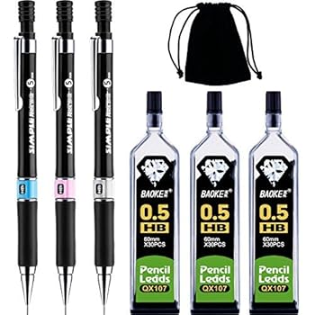 Mechanical Pencil Set, 0.5 mm HB, 3 Pieces Mechanical Pencils and 90 Pieces Lead Refills with Black Velvet Bag for Writing, Drawing, Signature