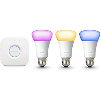 Philips Hue White and Colour Ambiance Wireless Lighting E27 Starter Kit, 3 x Philips Hue 10W E27 Richer Colour Bulbs, 1 x Hue Bridge 2.0, Apple Home Kit Enabled, Works with Alexa