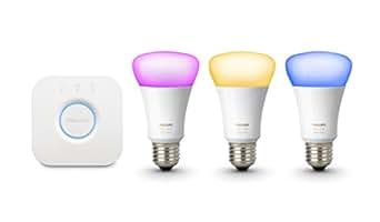 Philips Hue White and Colour Ambiance Wireless Lighting E27 Starter Kit, 3 x Philips Hue 10W E27 Richer Colour Bulbs, 1 x Hue Bridge 2.0, Apple Home Kit Enabled, Works with Alexa [Energy Class A+]