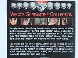 Freed when the real killer is found, Arnold swears revenge on those who committed him. Using his new-found psychic powers, Arnold eliminates those he hates in a brutal and bloody reign of terror, which leaves detectives Morgan (Paul Burke) and Anderson (Also Ray) faced with a killer they can't even see...