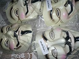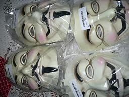 the mask is very very slightly green,rough cut out edges eg:the eyes,nose and around the face,the blackish lines that is MENT to be around the eyes and on their corners(eyes) are missing...eg: not there,the elastic attactment is very thin...way thinner then the plastic on the face(it shouldn't be showing eg:the REAL mask has no slits and the elastic attaching is on the inside.....