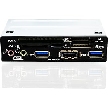 CSL 3.5" all-in-one USB 3.0 (Super Speed) card reader | 2 x USB 3.0 | 2.0 Card Reader Ports | Multi-function panel in black | SD / SDHC / Mini SDHC / Micro SDHC / USB / XD / CF / MD