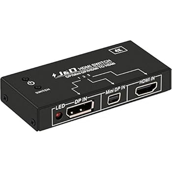 HDMI / DisplayPort / Mini DisplayPort to HDMI 4K Switch, J&D HDMI/DP/Mini DP to HDMI Switcher - 6 Feet 4K HDMI Cable Included