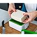 Pull down the bandsPull down the silicon bands onto the available hooks to suit the various thicknesses of tofu. Use the top hook to press silken tofu |