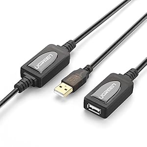 • UGREEN USB Extension Cable,15m USB 2.0 Type A Active Male to Female Cord with Signal Amplifier Repeater for Printers, WiFi Receiver, Monitor, Keyboards, Game Console, Loudspeakers, Scanners, Displays, Cameras, Headsets etc