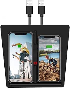 - 【DUAL USB, DUAL PHONES CHARGING】Using both USB ports to charge two phones simultaneously with the maximum output of 10 watt for each side. Tested with iPhone X, charge 1% power in 2~3 minutes with 5V input. Compatible with Any Qi-enabled devices like iPhone XS/XR/X/8/8 plus and other Qi-enabled phones.