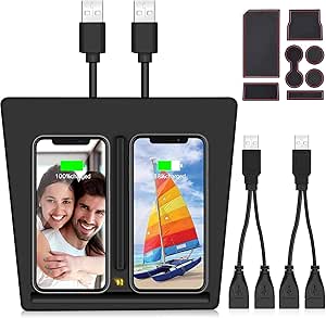 VXDAS Model 3 Wireless Charger, QI Wireless Phone Charger Dual Phones Charging Pad with USB Splitter for Tesla Model 3 Accessories (7pcs Storage Mat Set)