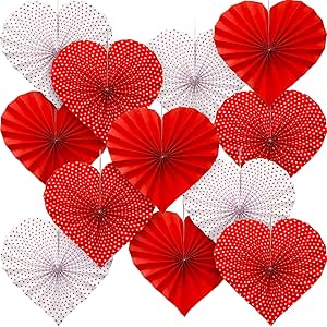 • Double-sided printing: these red heart paper fans are made of durable craft paper, not easy to tear off or be out of shape, coming with looped hanging strings, convenient for hanging them on