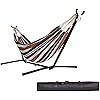 Amazon searches brought up this hammock and stand. Not being the smallest person in the world, after putting it together (5mins) I couldn't be more satisfied.