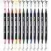 Watercolour Brush Pen Set,SAYEEC 12 Colours Dual Tip Brush Pens with Fineliner Tip Art Marker Soft Flexible Tip Durable Create Watercolor Effect - Best for Adult Coloring Book/Manga/Comic/Calligraphy