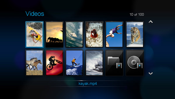 Media Library – This unique feature lets you view all your media by media type in one menu regardless of its location in folders or drives. You can view your content by categories such as genre, album, artist, date.