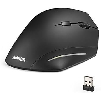 Anker Ergonomic USB 2.4G Wireless Vertical Mouse with 3 Adjustable DPI Levels 800 / 1200 / 1600 and Side Controls - Black
