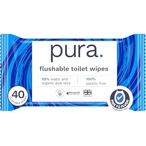 Pura Flushable Moist Toilet Tissue Wipes, 14 x 40 wipes per pack (560 Wipes) 100% Plastic Free, 99% Water Washlets, Certified Fine to Flush Biodegradable, Compostable, Vegan, Gentle, Clean, Wet Wipes10% 15%Rated 4.4 out of five from 2687 reviews 2687Size Name 40 count (Pack of 14)£18.27 (£0.03 / count)Deliver every: -