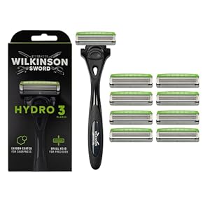 WILKINSON SWORD - Hydro 3 Razor For Men, Carbon Coated Blades, Hydrating Gel & Skin Guards, Razor + 8 Razor Blades5% 15%Rated 4.4 out of five from 5479 reviews 5479Style Name Handle + 9 Blades£11.77Deliver every: -