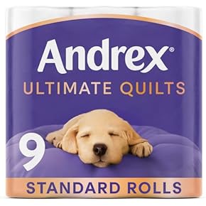 Andrex Ultimate Quilts Toilet Tissue 9 Standard Toilet Rolls, Air Pocket Technology for Soft, Thick Sheets (Previously Andrex Supreme Quilts Toilet Paper) – 9 Toilet Rolls5% 15%Rated 4.7 out of five from 17464 reviews 17464Size Name 9 Count (Pack of 1)£4.75 (£0.53 / count)Deliver every: -