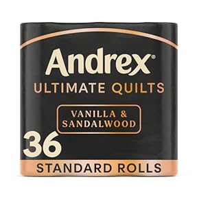 Andrex Ultimate Quilts Toilet Tissue; 36 Quilted Toilet Rolls with Vanilla and Sandalwood Fragrance, Quilted Loo Rolls for Premium Skin Comfort, 9 Toilet Rolls x 4 Packs5% 15%Rated 4.7 out of five from 2622 reviews 2622Style Name 36 Quilted Toilet Rolls with Vanilla and Sandalwood Fragrance£19.00 (£0.53 / count)Deliver every: -