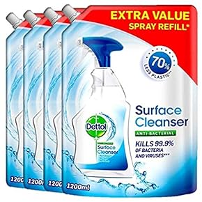 Dettol Surface Cleaner Pouch Refill, Multipack of 4 X 1.2L, Total 4.8L, Antibacterial Disinfectant Surface Cleaning Spray, Disinfectant Floor Cleaner, Household Cleaners10% 15%Rated 4.8 out of five from 4220 reviews 4220Size Name 1.2 l (Pack of 4)£13.18 (£2.75 / l)Deliver every: -