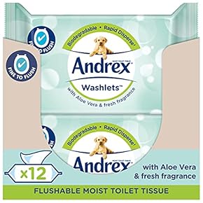 Andrex Fresh & Sensitive Hygiene Wipes, 12 Pack; Moist Toilet Tissue, Hypoallergenic and Fragrance Free Wet Wipes for Sensitive Skin, Flushable, 30 Sheets, (Pack of 12)5% 15%Rated 4.6 out of five from 91 reviews 91£10.69 (£0.03 / count)Deliver every: -