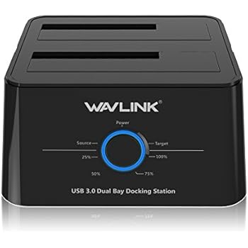 Wavlink USB 3.0 Dual Bay SATA External Hard Drive Docking Station for 2.5 Inch and 3.5 Inch HDD / SSD Support Offline Clone / Backup Functions - Black