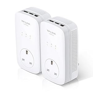 • TP-Link TL-PA8030PKIT 3-Port Gigabit Passthrough Powerline Starter Kit, Data Transfer Speed Up to 1300 Mbps,  Ideal for HD Video Streaming and Online Gaming, No Configuration Required, UK Plug